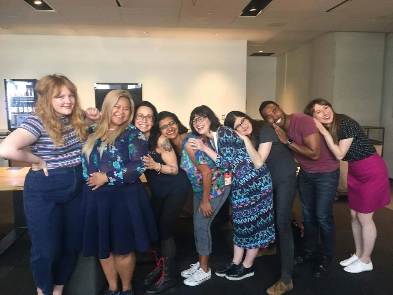 “Romy and Michele’s High School Reunion” Feminist Live Read at JFL Toronto / cast photo with special guest Janeane Garofalo